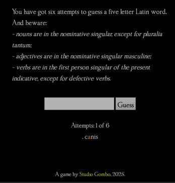 Hodie nobis licet, beneficio ludi a Studio Gombo scripti, cuius nomen Verbulum.